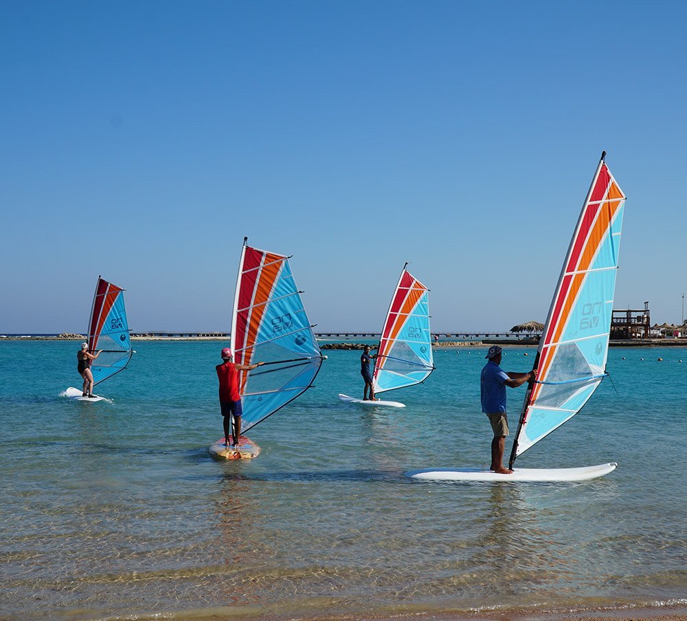 We have group lessons and private lessons. Lessons are also differentiated for adults, youngsters and kids. All our windsurfing lessons are offered in English, German, French, Italian, Russian and are held by internationally certified and experienced windsurf instructors.